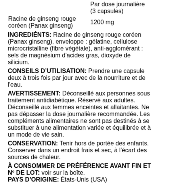 • Pureté garantie, sans additifs inutiles, juste l’essence du ginseng rouge pour des résultats visibles dès les premières prises.