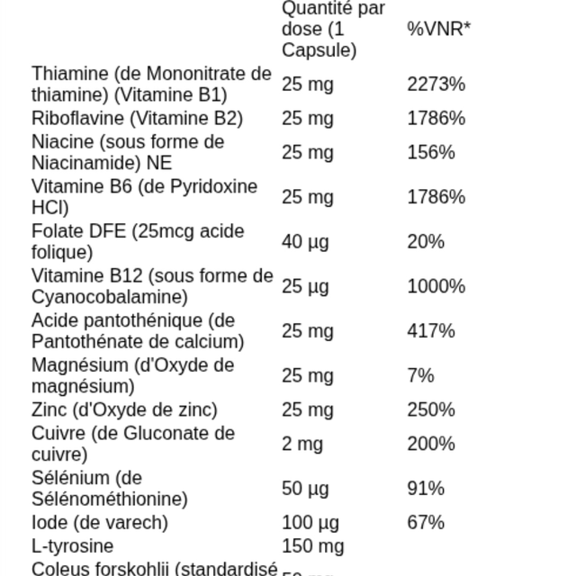Consultez un médecin si enceinte, sous traitement ou problèmes de tension/sang.
